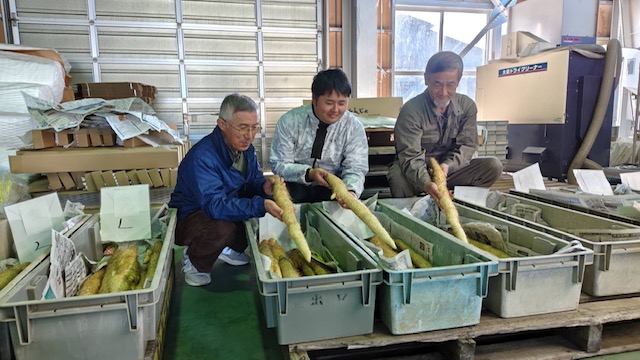 この日は3人の生産者が収穫した約200kgの「加賀じねんじょ」が出荷されました。