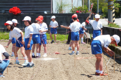 児童は1年かけ大豆の栽培からみその仕込みまで行います。