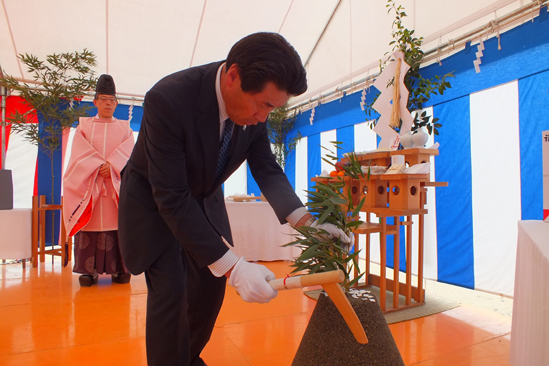 の島﨑俊明代表取締役社長が鍬入れの儀を行った後、10人が玉ぐしを奉奠しました。