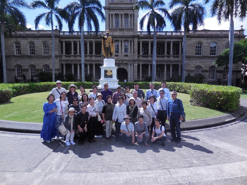 当JAは11月8日からと10日からの2班に分け、JA石川かほく定期積金旅行を実施し、2年前からアロハ定期積金に加入していた63人が、世界遺産の島「ハワイ島」とホノルルの旅を満喫しました。初日はホノルルを観光し、翌日にはハワイ最大のサンセット・ディナー・クルーズ船「スタ・オブ・ホノルル号」に乗船。3日目はビッグアイランドの愛称を持つハワイ諸島最大の島「ハワイ島」を観光。最終日には、ワイキキビーチを訪れたほかショッピングを楽しみました。