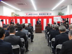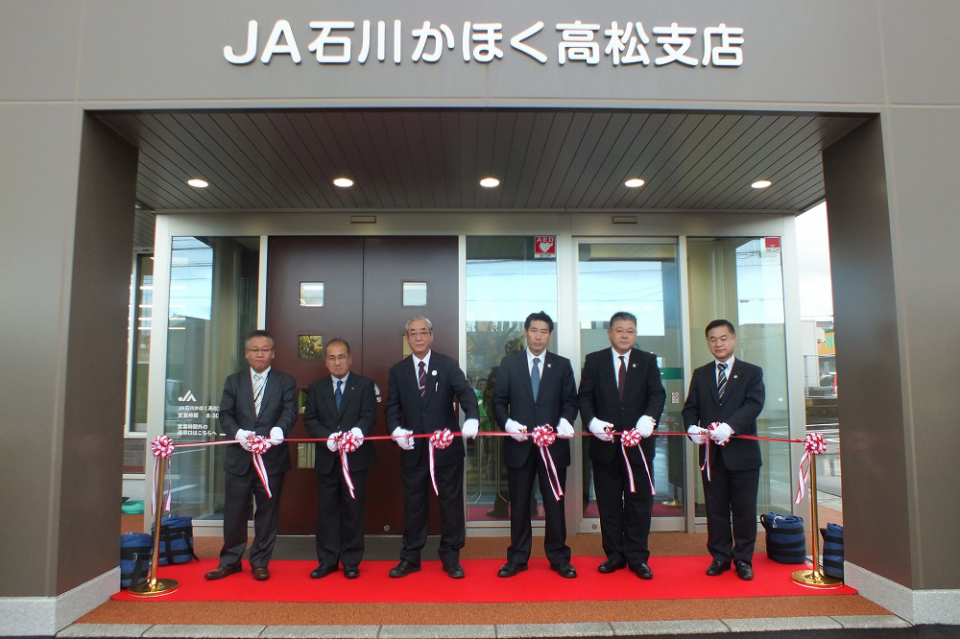 当JAの高松支店が11月24日、新築・移転オープンし、組合員や利用者、関係者約30人が開店を祝いました。