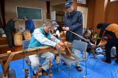 当日は指江地区の住民16名が参加し、熱心に質問しながら菰編みから桟俵の作り方までを学びました。