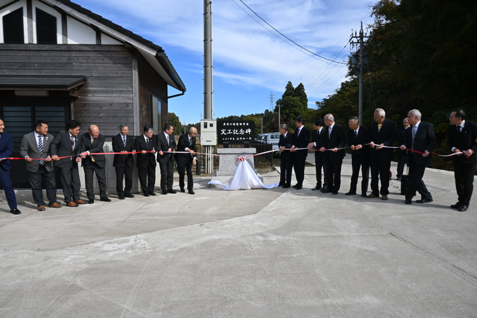 写真:晴天の中行われた完工記念碑除幕式