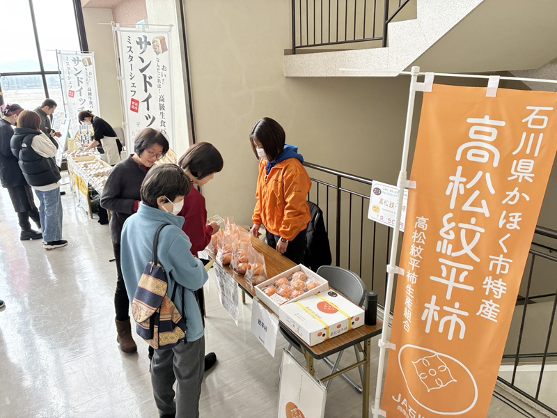 高松紋平柿生産組合は12月27日からの2日間、小松市で開催されたPFUブルーキャッツ石川かほくの試合会場にて「高松紋平柿」の販売を行いました。