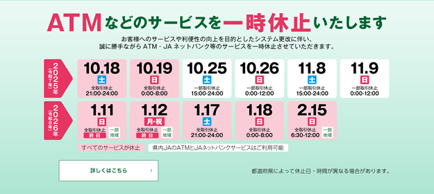 2025年10月01日 | ATMなどのサービスを一時休止させていただきます。 |