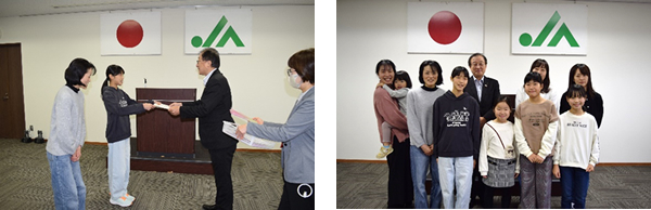 12月13日(土)JA本店で修了式が行われ、寺西清悟代表理事組合長がひとり一人に終了証を手渡しました。