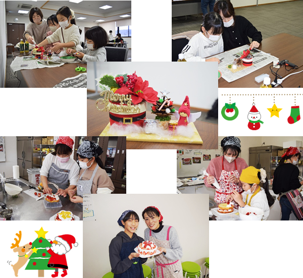 修了式が終わった後は農産物直売所生産者の卜部智栄さんを講師にクリスマス小物作りと親子で思い思いのクリスマスケーキデコレーションを楽しみました。
