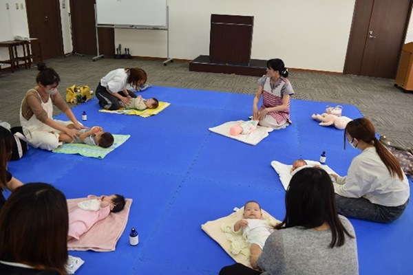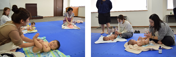9月19日(金)「JA共済アンパンマンこどもクラブ」を開催しました。ベビーマッサージとサイン教室「Sweet Babyりーふ」の垣内真由美さんを講師に生後2〜10カ月の赤ちゃん親子5組を対象にしたベビーマッサージ教室を行いました。垣内さんは「赤ちゃんは触れられることでママの愛情を感じ、心を落ち着かせるので血行も良くなり免疫力も高められます。」と話していました。